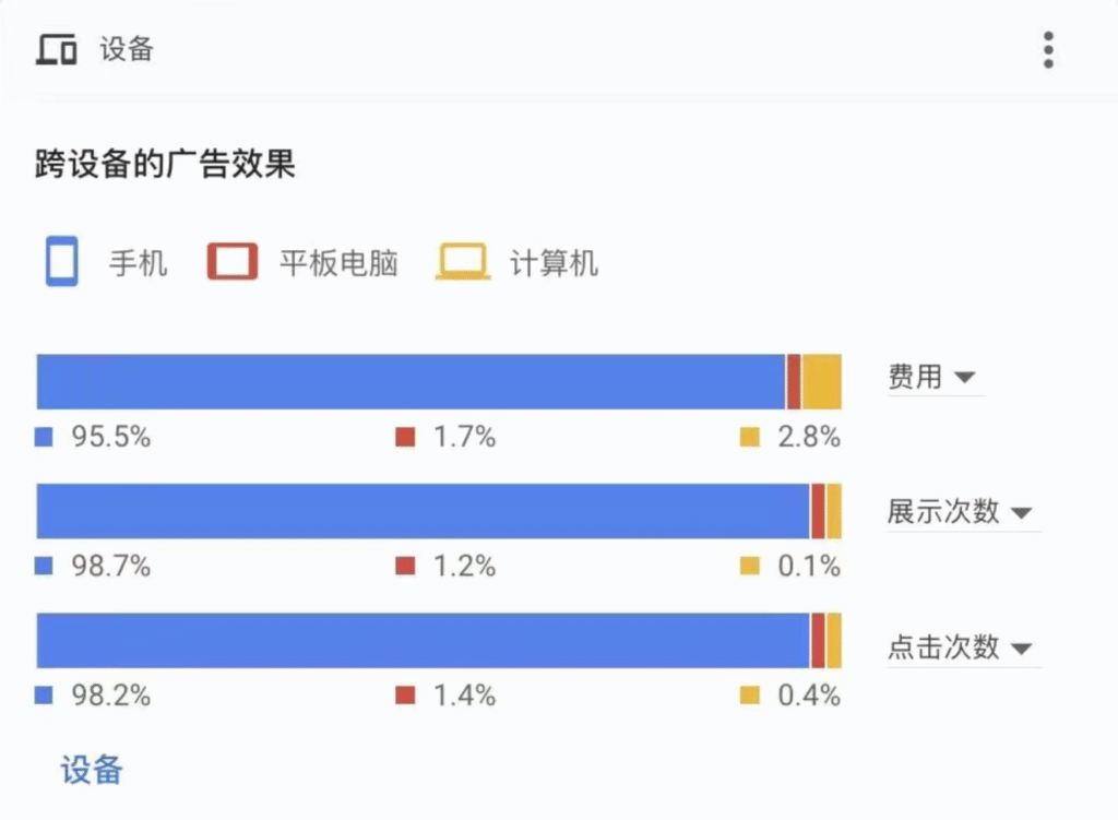 为什么?因为每个行业的客户,在检索的时候使用设备的习惯偏好不同,就会影响你的广告效果。